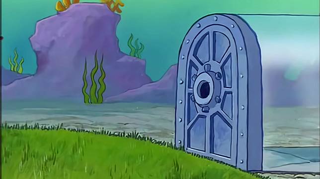 Emang sih, keliatannya cuma rumput dan pintu aja, tapi pasti orang-orang tau kok kalau itu rumah Sandy Cheeks.
