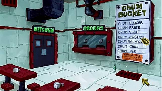 Gak cuma Krusty Krab, restoran saingannya, Chum Bucket pun cocok banget buat kamu jadiin background Zoom selama meeting berlangsung.